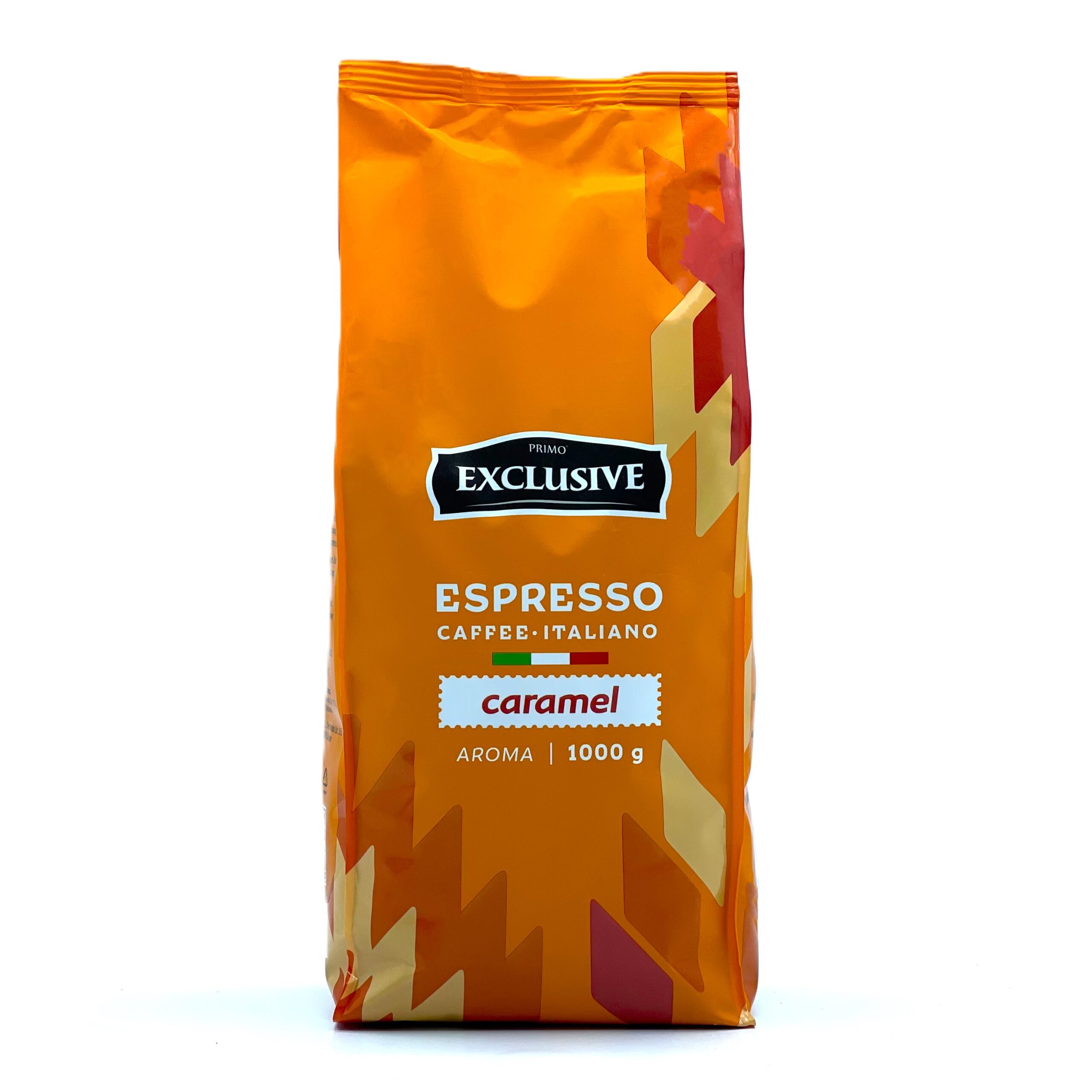 Кава в зернах Primo Exclusive Caramel 1 кг — це ароматизована кава, створена з добірних зерен арабіки, вирощених переважно в Африці (Уганда та Руанда). Зерна обсмажуються до середнього ступеня, що дозволяє зберегти природний аромат кави та сформувати м’який і збалансований смак.