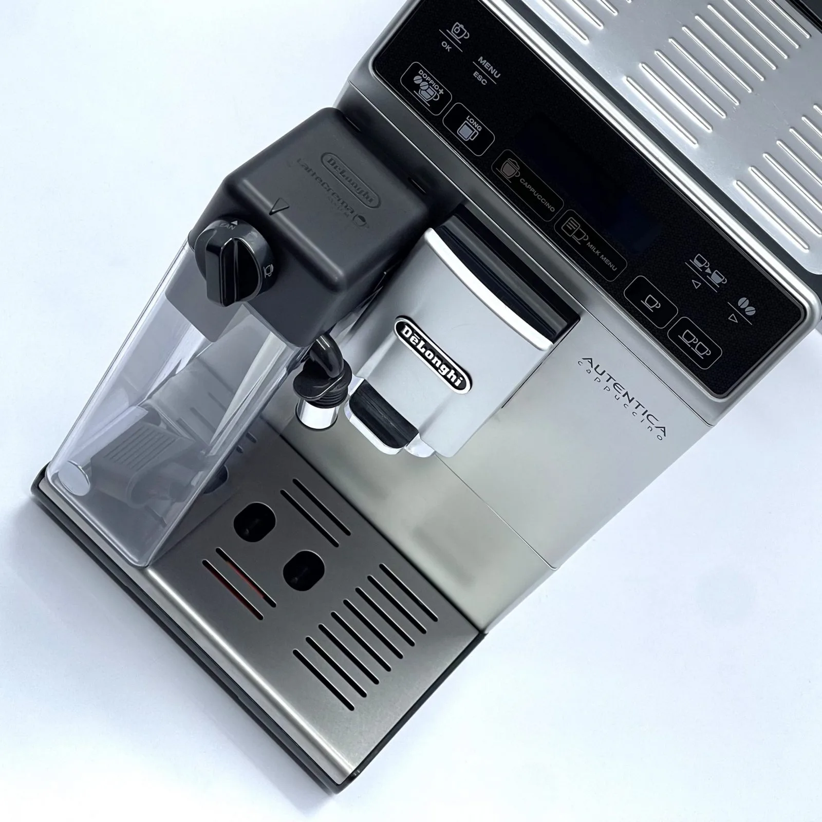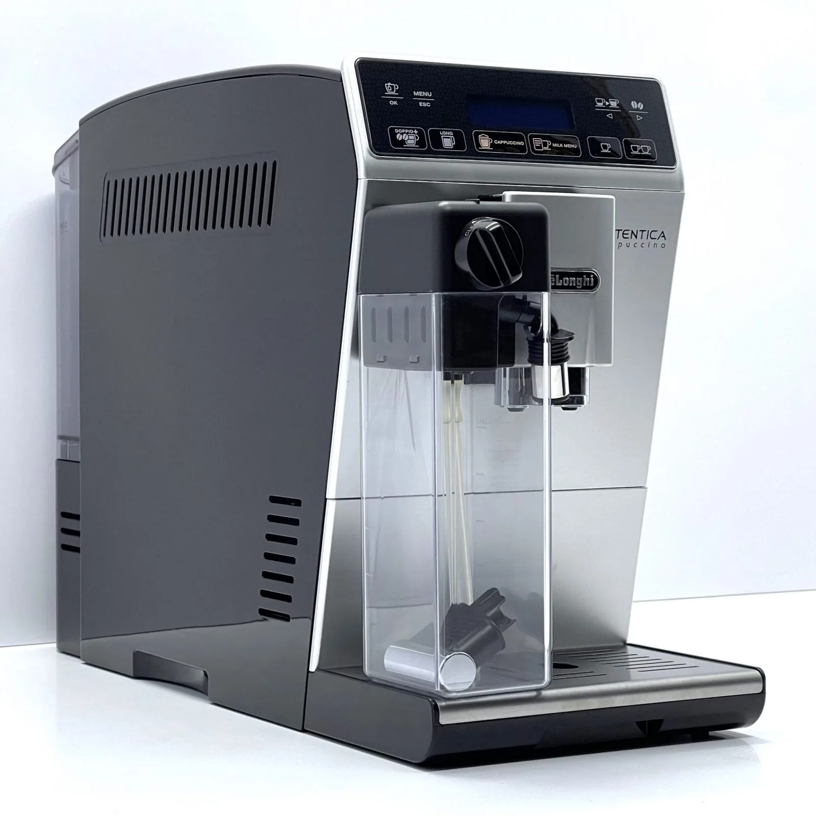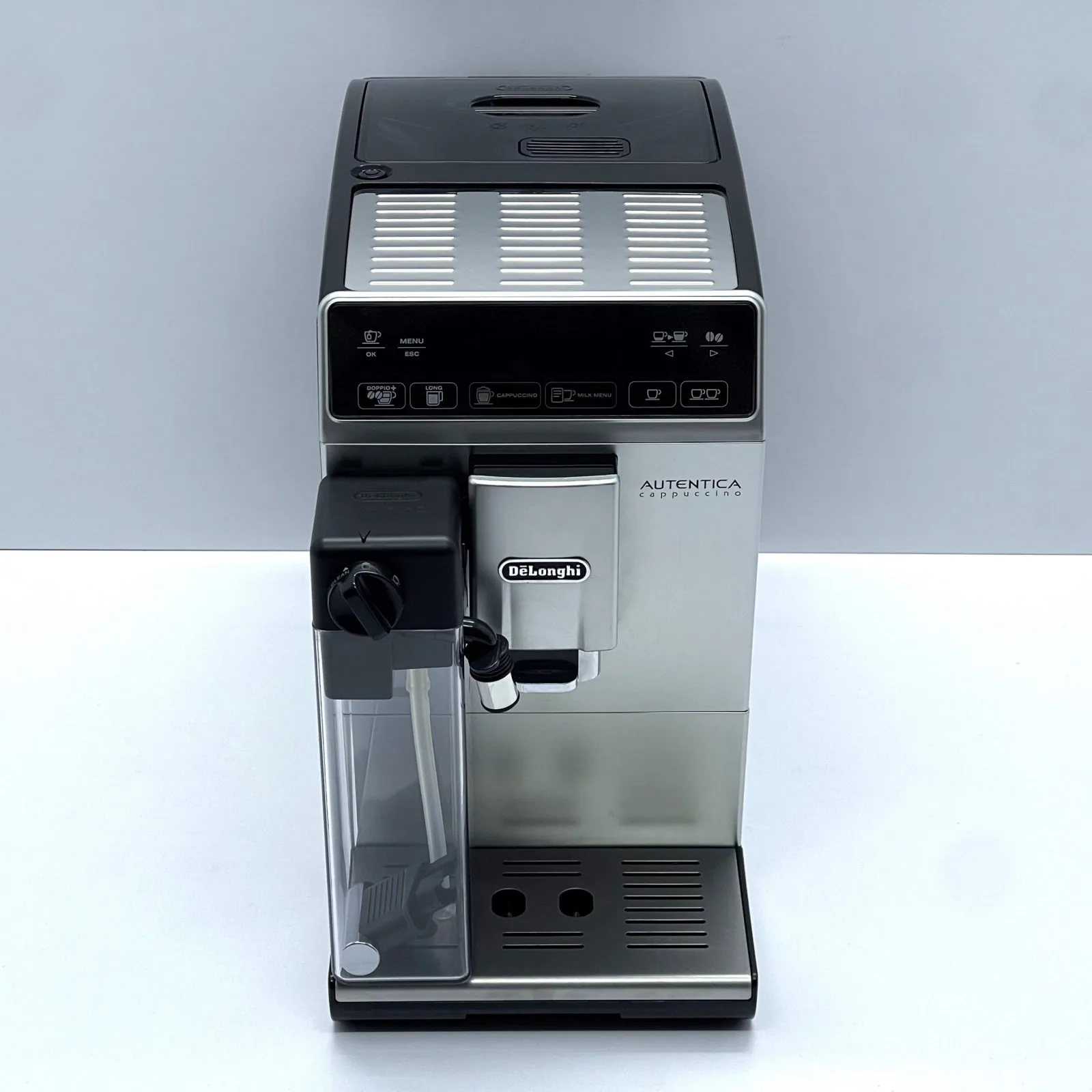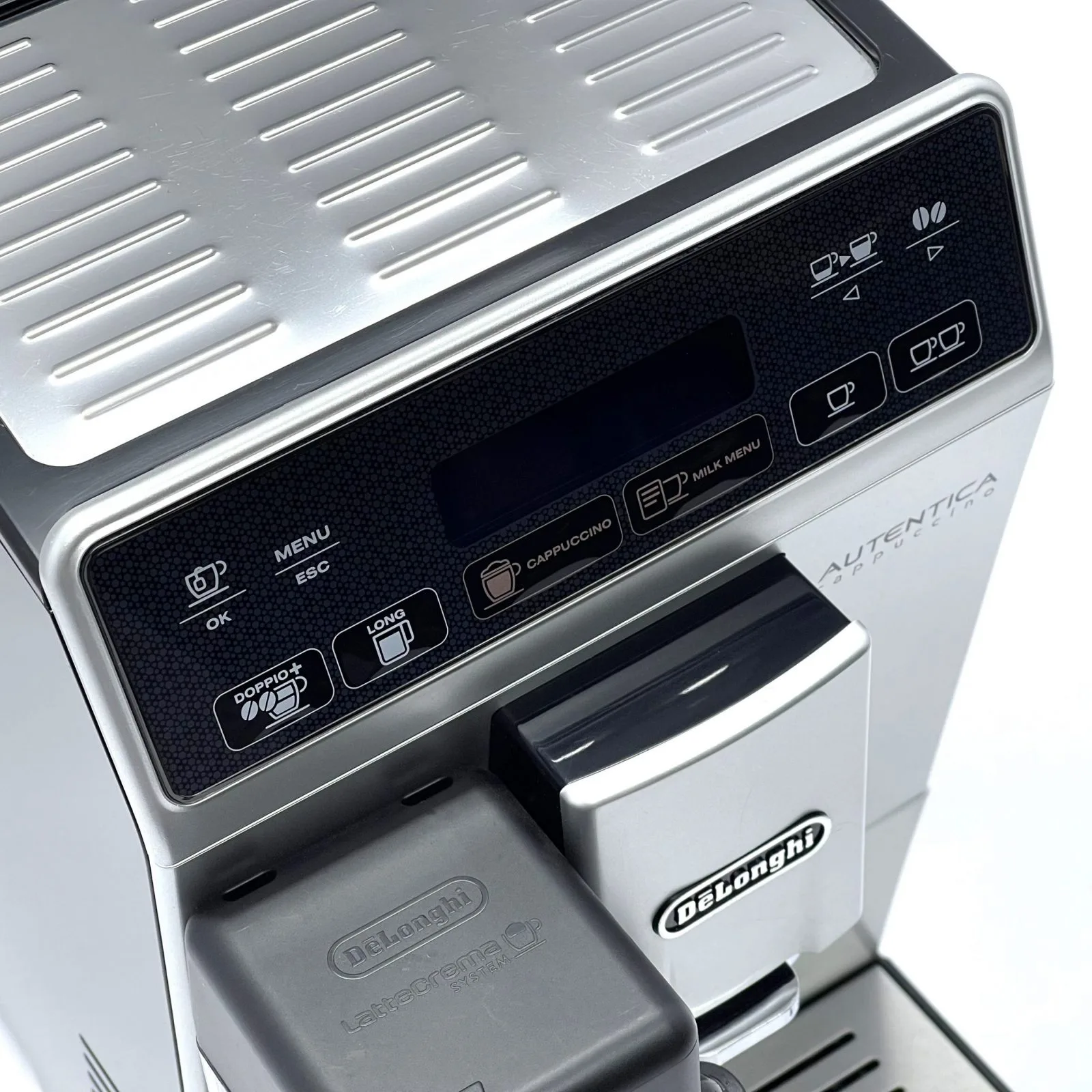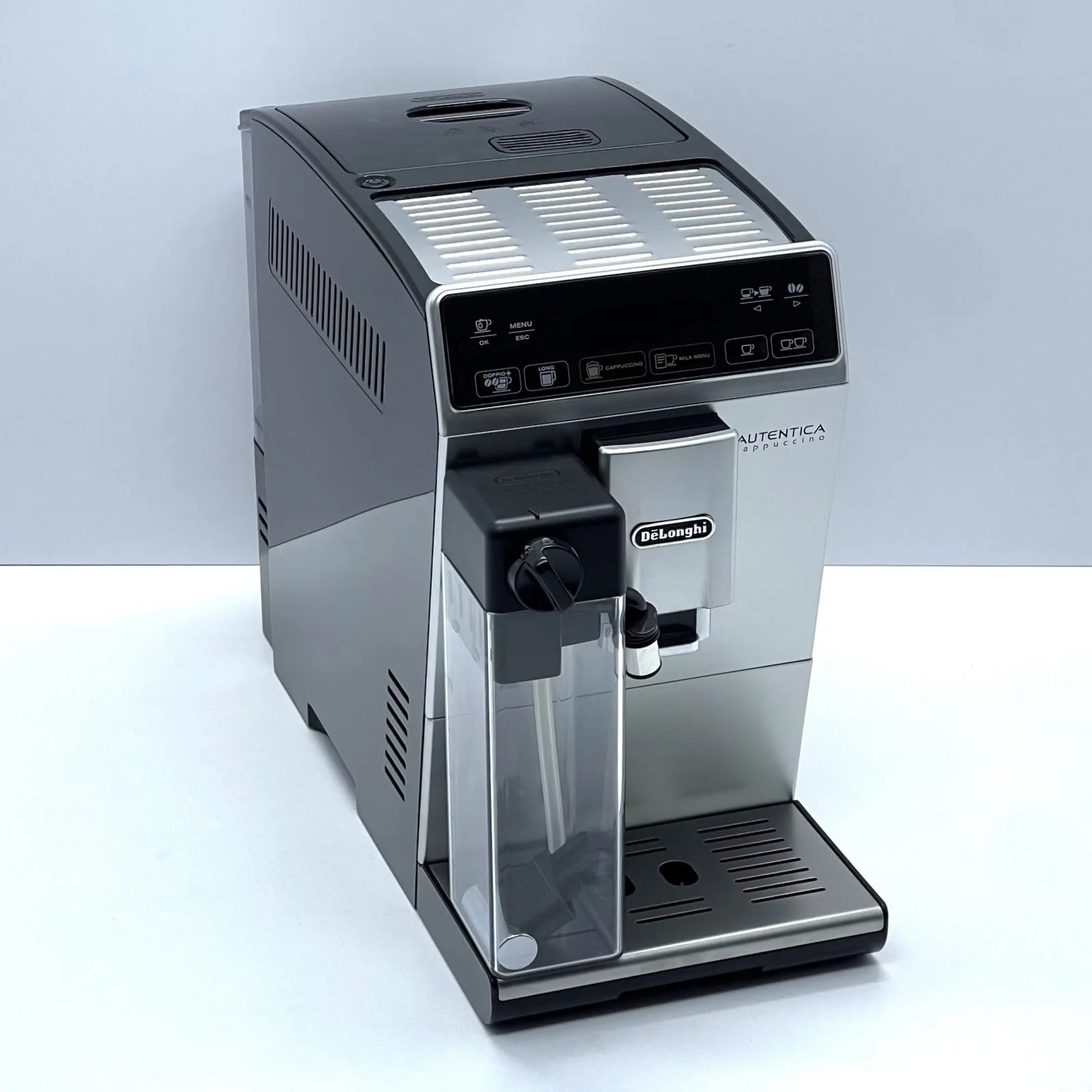 DeLonghi Autentica Cappuccino Silver — це компактна та стильна автоматична кавомашина, що дозволяє готувати широкий вибір напоїв одним дотиком. Оснащена системою LatteCrema, вона створює густу та ніжну молочну піну ідеальної температури. Кавомашина пропонує еспресо, капучино, латте макіато, лунго та інші напої з можливістю налаштування міцності, об’єму та температури під ваш смак.