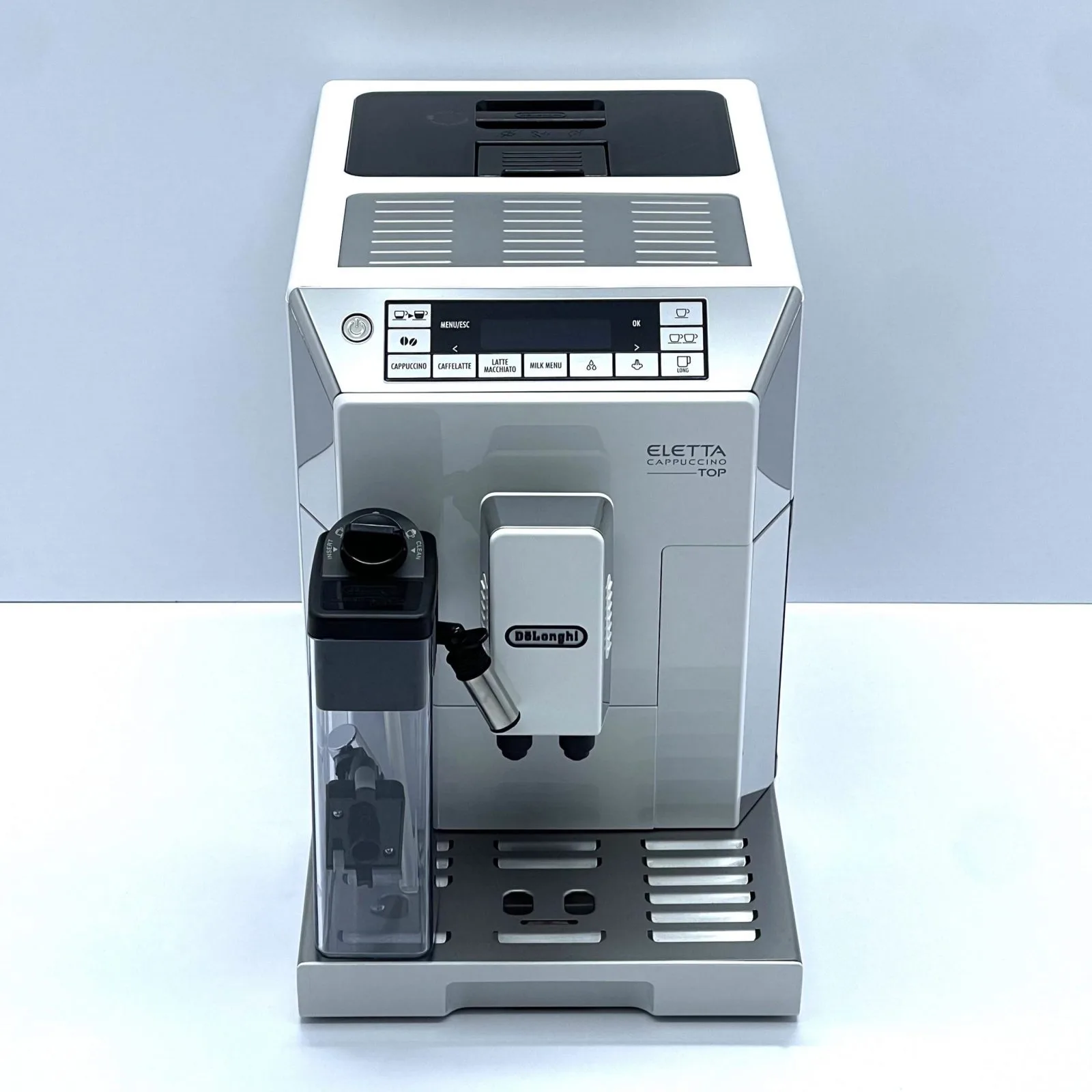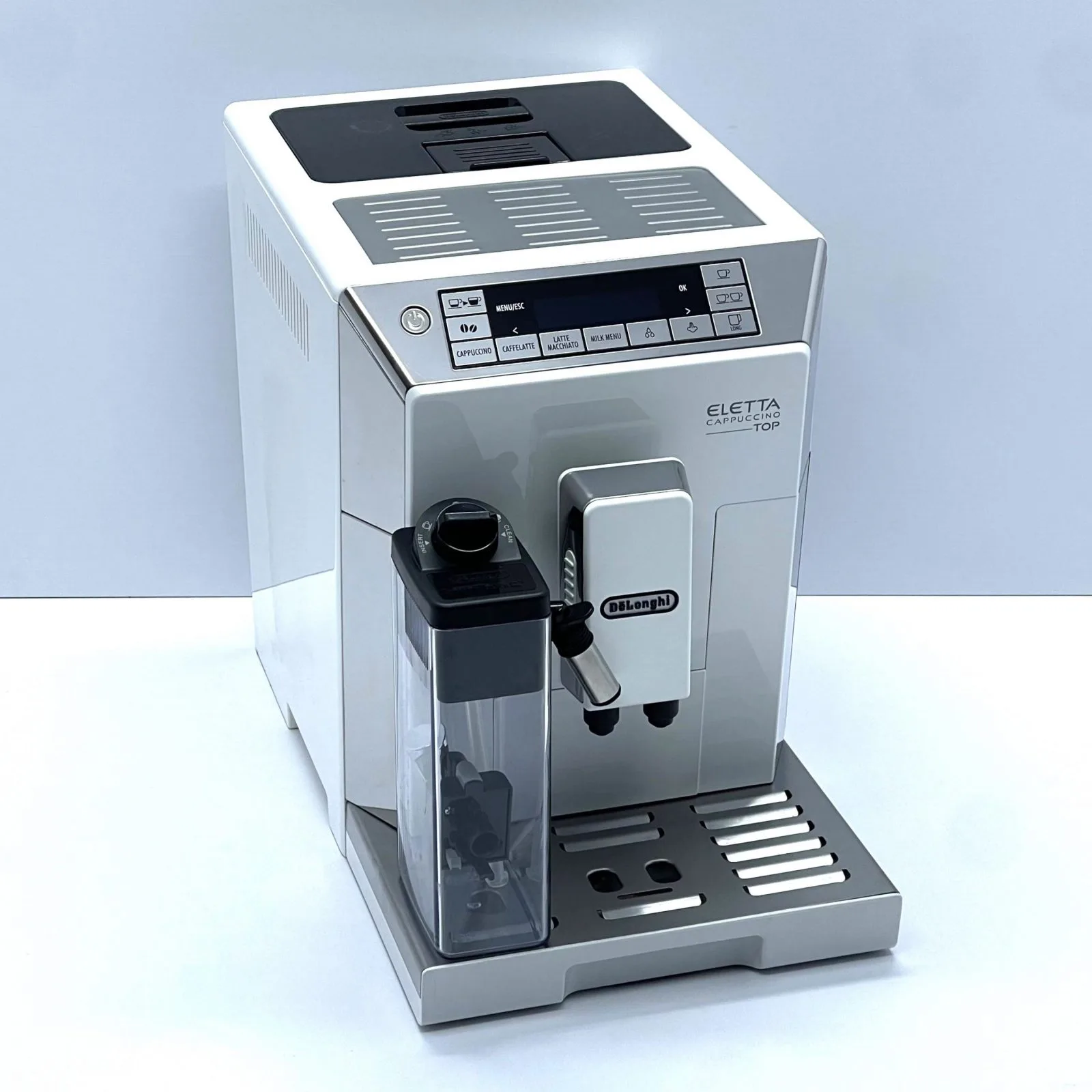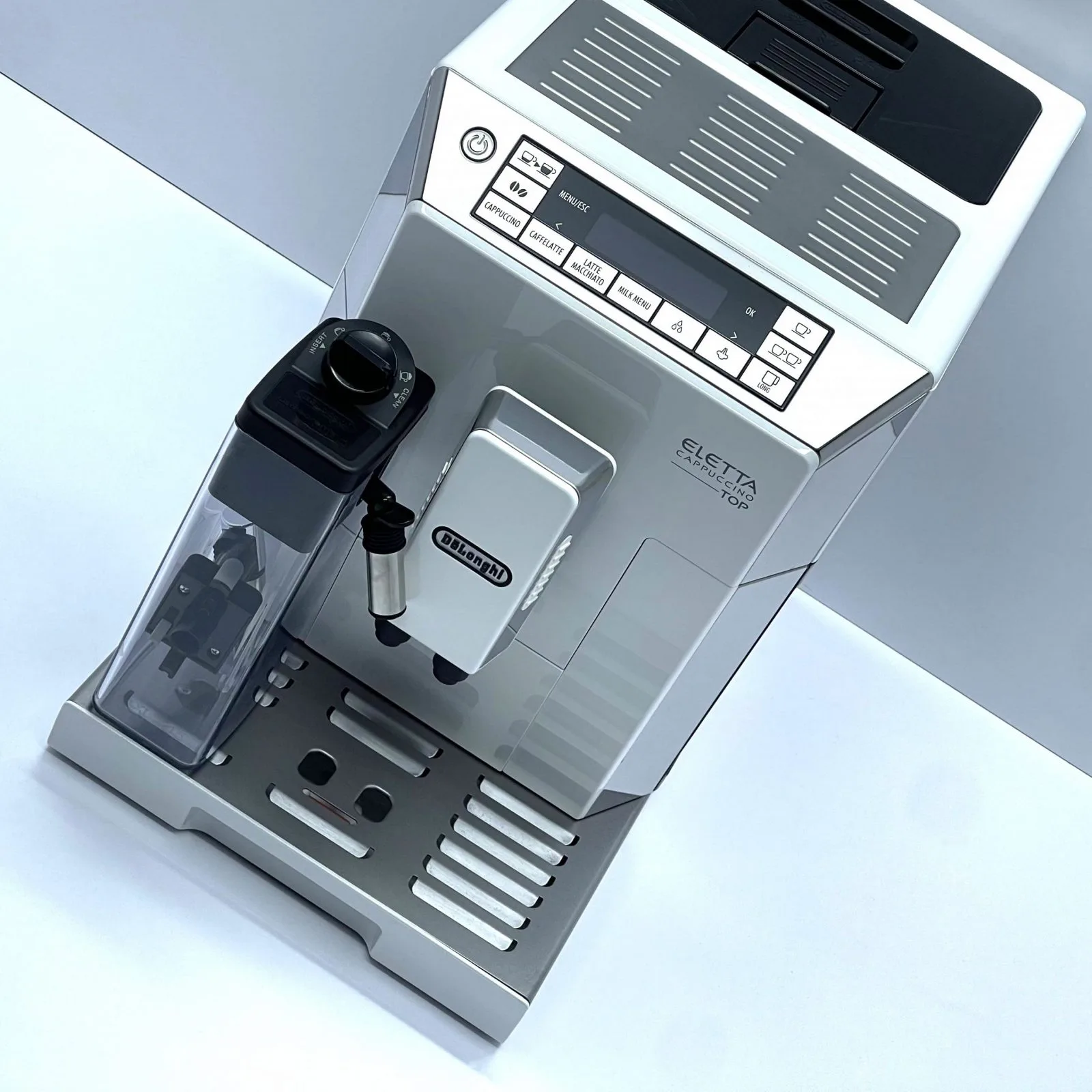 DeLonghi Eletta Cappuccino Top White — це стильна автоматична кавомашина для дому або офісу, яка готує класичний еспресо, капучино, лате макиато та інші напої одним натисканням. Завдяки автоматичному капучинатору та сенсорній панелі з дисплеєм, керування машиною максимально просте та зрозуміле.