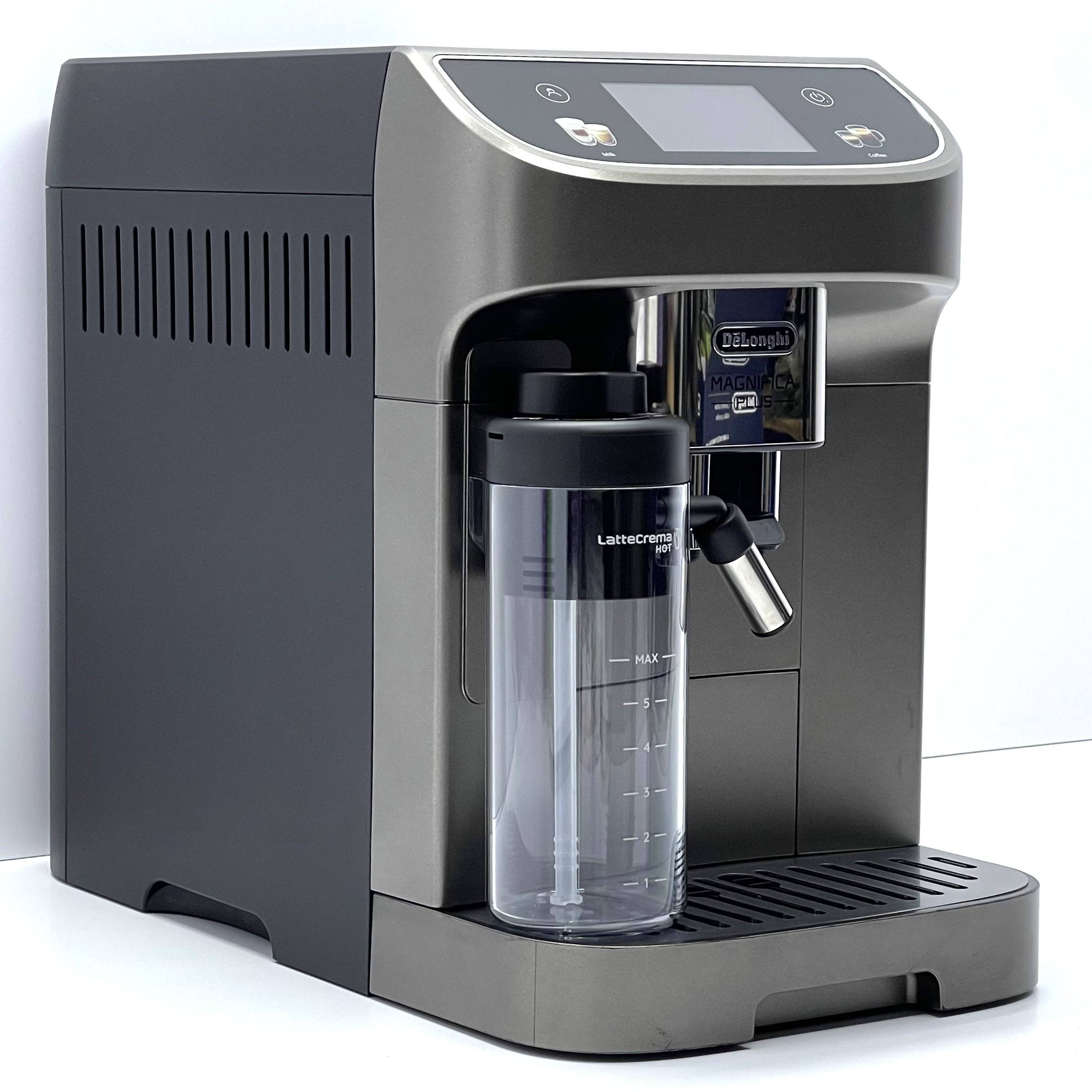 DeLonghi Magnifica Plus Cappuccino – це автоматична кавомашина преміум-класу, яка дозволяє приготувати широкий спектр кавових напоїв одним натисканням. Завдяки системі LatteCrema формується густа й ніжна молочна пінка для капучино, латте макіато чи інших молочних рецептур.