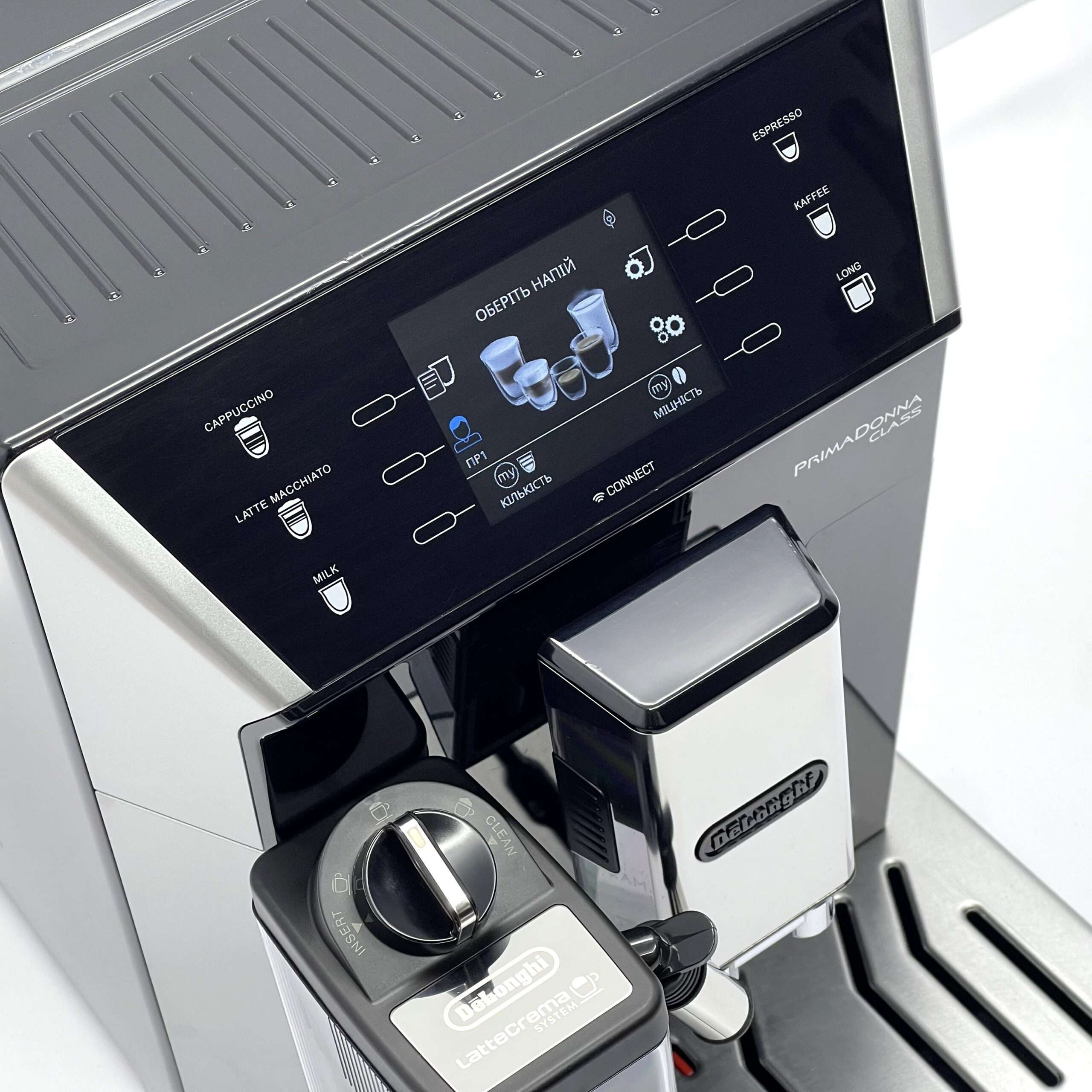 DeLonghi PrimaDonna Class Black – це преміальна автоматична кавомашина для дому або офісу, яка поєднує широкий вибір напоїв, зручне сенсорне керування та хороші можливості для персональних налаштувань. Модель готує еспресо, каву, long, doppio+, cappuccino, latte macchiato, flat white, caffelatte, гаряче молоко та інші популярні напої одним дотиком. Вона працює як із зерновою, так і з меленою кавою, тому дає більше свободи у щоденному використанні.