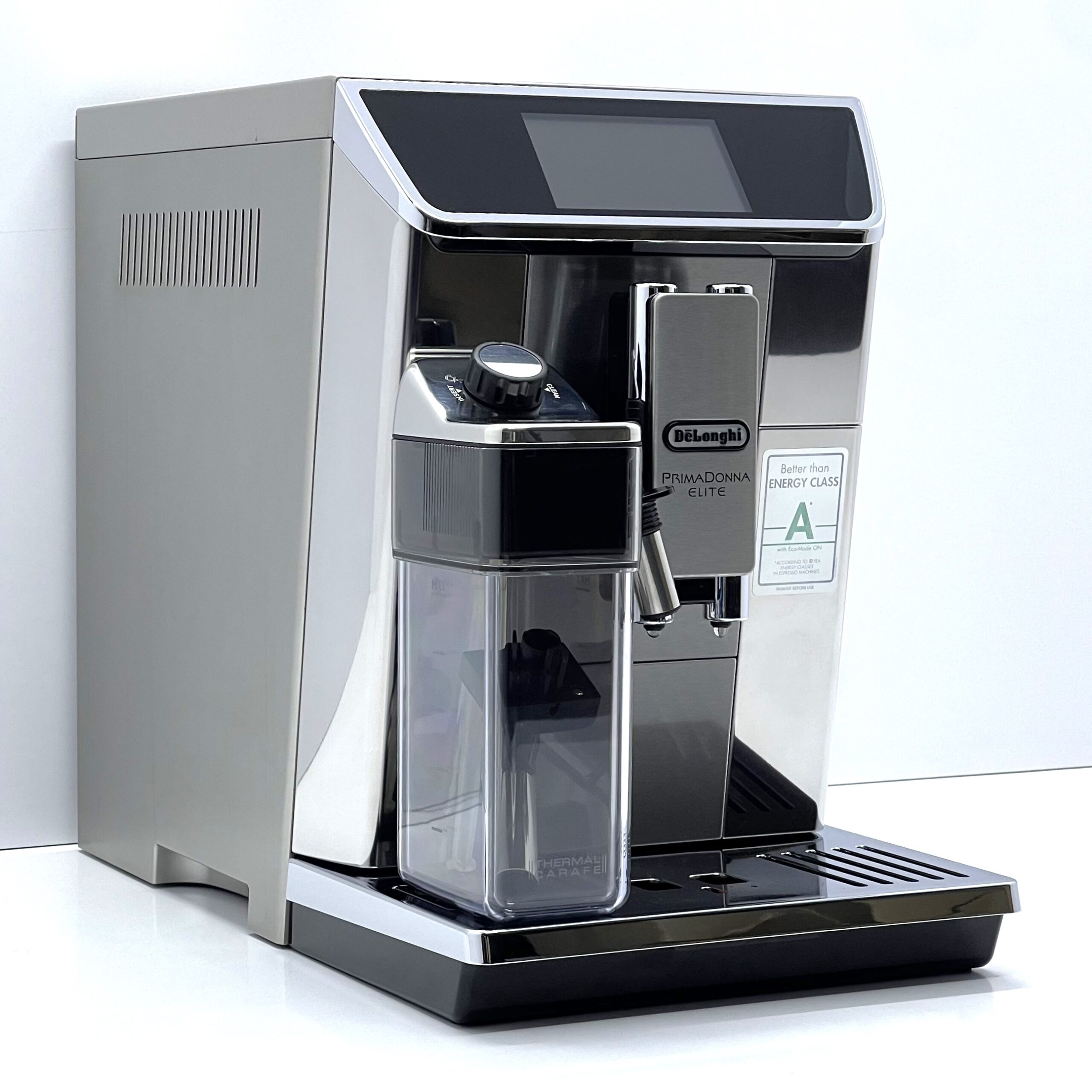 Одна з головних переваг цієї моделі – великий сенсорний дисплей, зрозуміле керування та можливість зберігати персональні профілі користувачів. Кавомашина підтримує підключення до застосунку для налаштування та персоналізації рецептів. Автоматична система спінювання молока допомагає отримувати щільну та ніжну молочну піну для капучино та інших молочних напоїв, а широкий набір готових програм дозволяє швидко готувати напої одним дотиком.