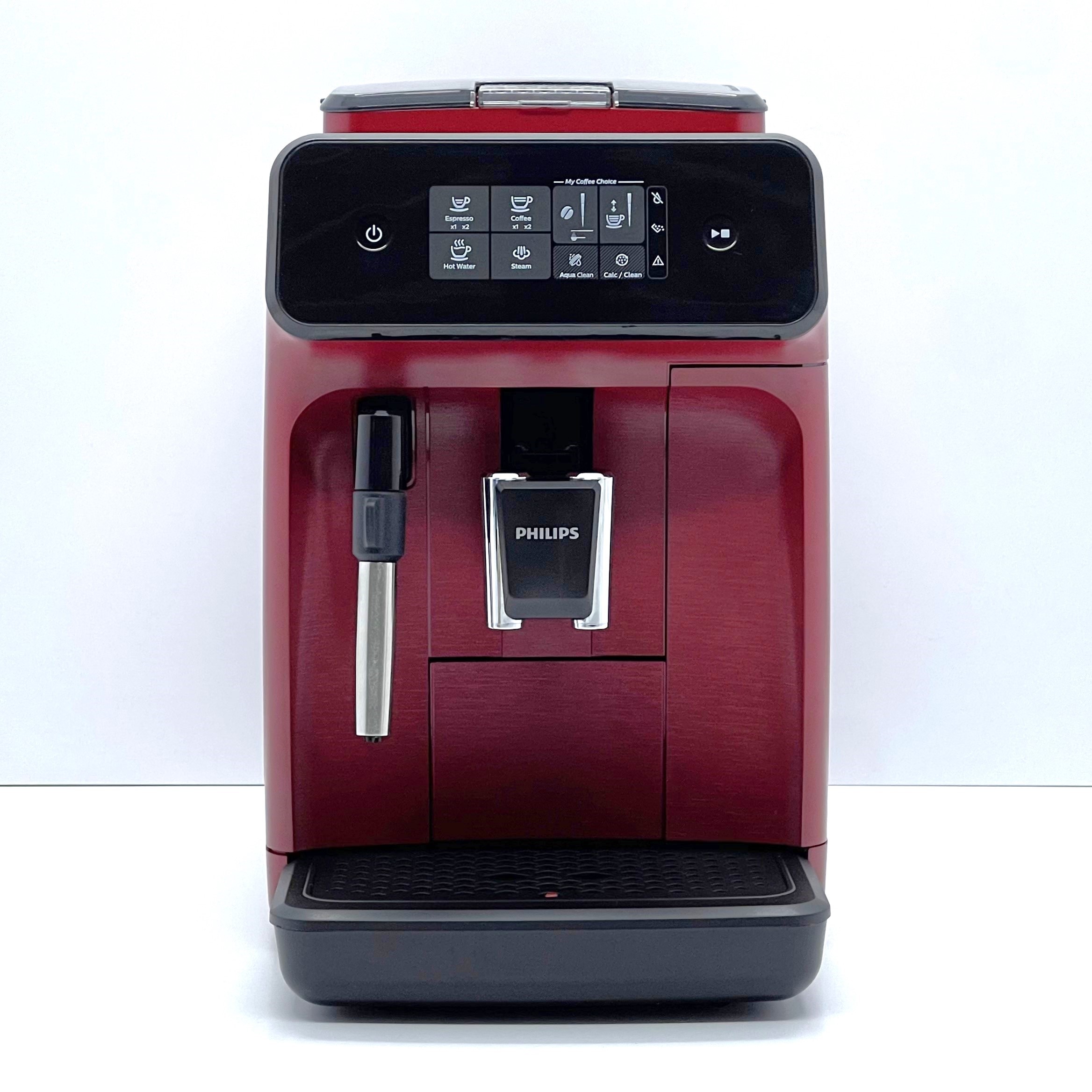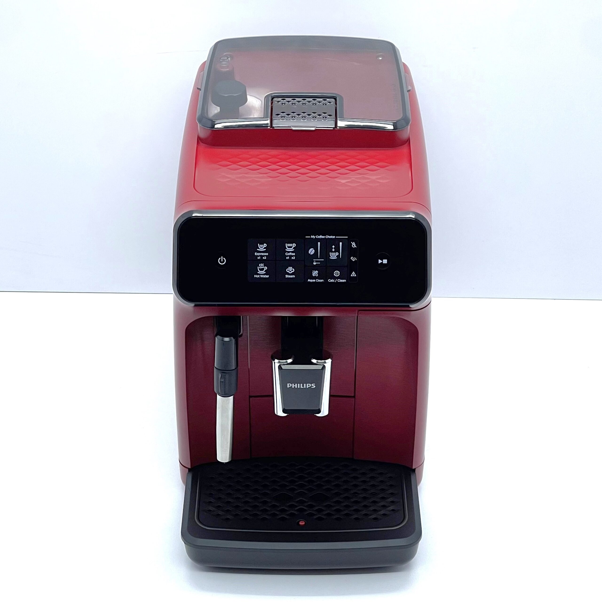 Philips Series 1200 Red – це автоматична кавомашина для дому, офісу або невеликого робочого простору, де важливі простота, акуратний розмір і зручне щоденне приготування кави. Модель працює із зерновою та меленою кавою, має зрозуміле сенсорне керування та дозволяє швидко готувати еспресо, каву більшого об’єму, гарячу воду, а також напої з молоком завдяки класичному капучинатору.
