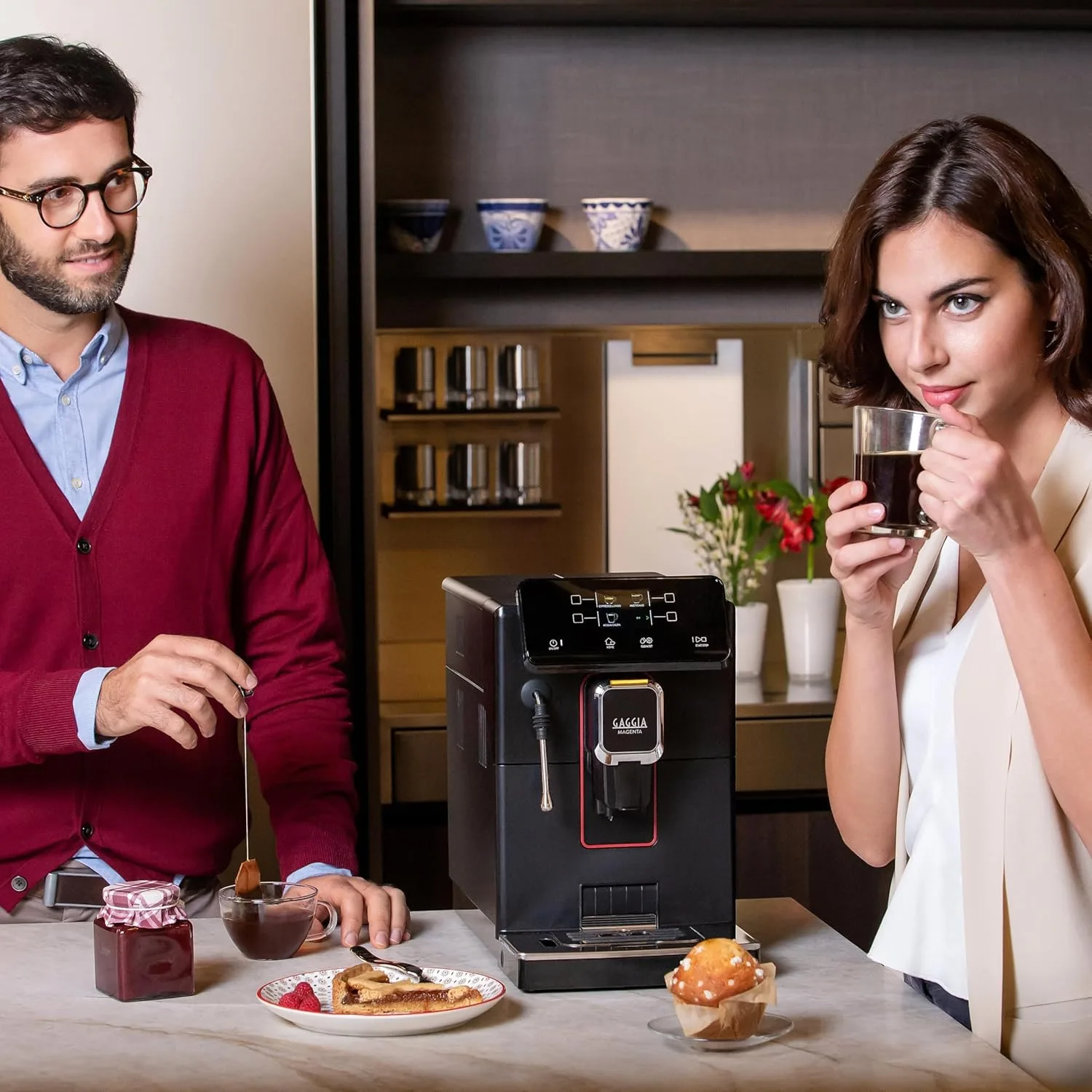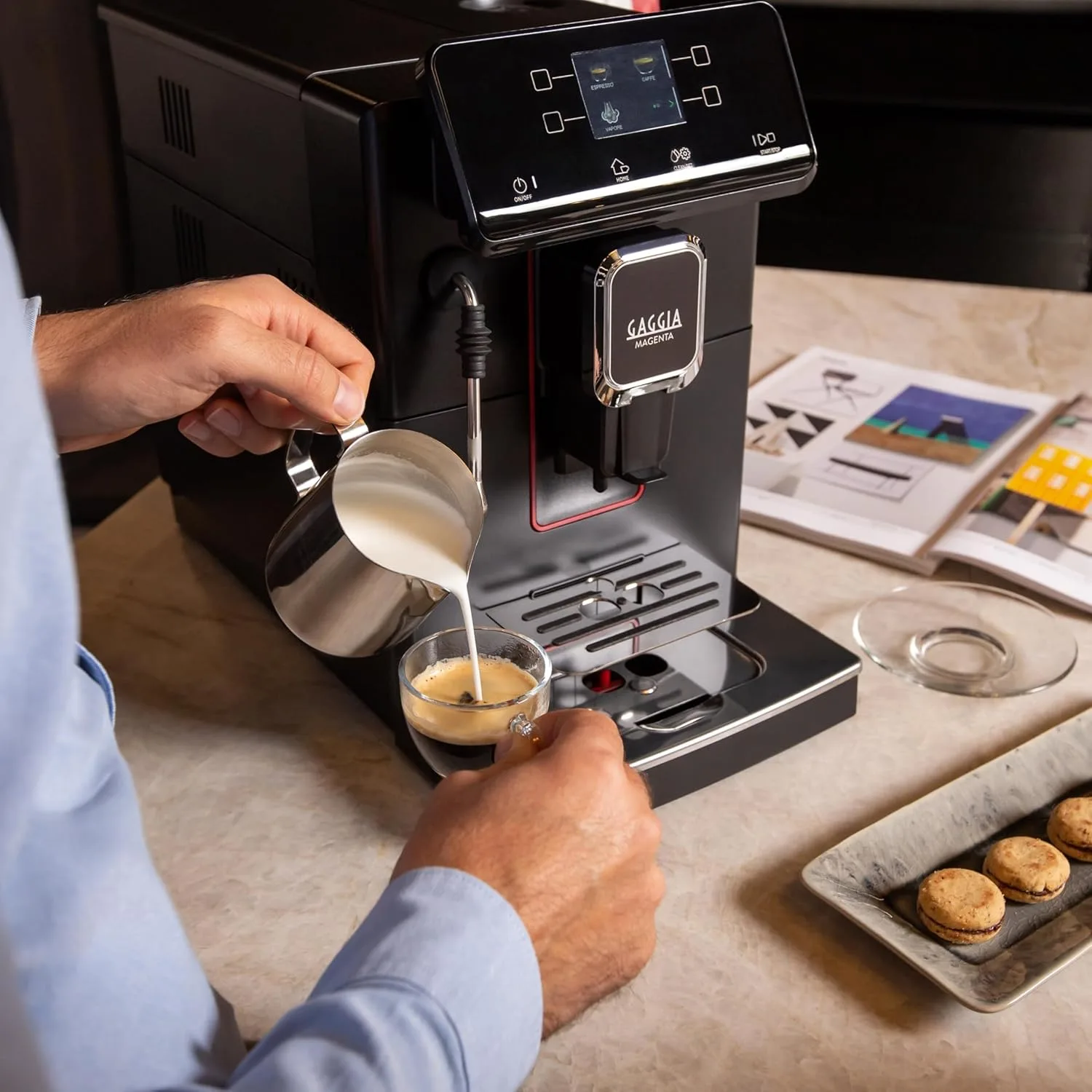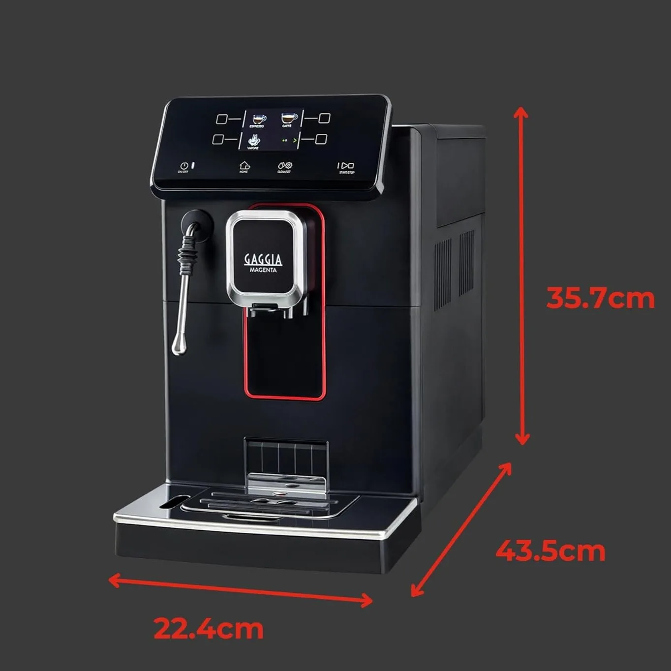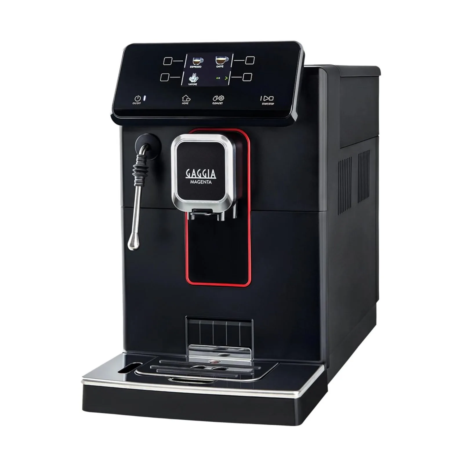 Gaggia Magenta Plus — це автоматична кавоварка з преміальним дизайном і ручним капучинатором, що дозволяє повністю контролювати процес приготування кави. Модель оснащена сенсорною панеллю з кольоровим TFT-дисплеєм, де ви можете обирати з 5 попередньо встановлених напоїв: еспресо, американо, капучино, порційна кава та гаряча вода.
