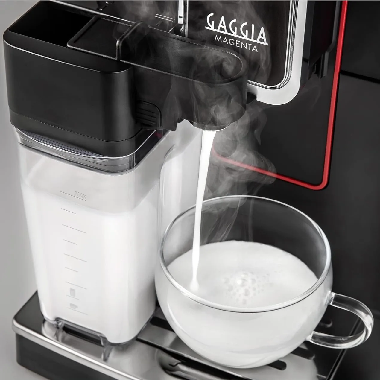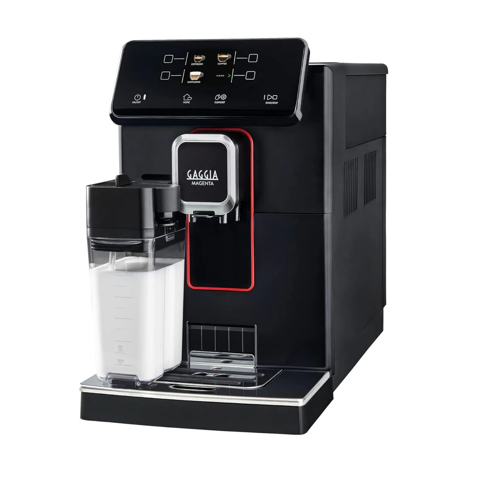 Gaggia Magenta Prestige — це сучасна автоматична кавоварка з вбудованою системою One Touch Cappuccino, яка дозволяє приготувати молочні напої одним натисканням. Завдяки автоматичному капучинатору кавомашина самостійно збиває молоко та очищує молочний контур після кожного використання.