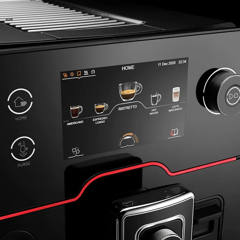 Сенсорна панель з інтуїтивним інтерфейсом дозволяє обрати потрібний рецепт у кілька дотиків. Ви можете зберігати персональні налаштування міцності, температури, об’єму та кількості молока. Кавомашина оснащена автоматичним капучинатором, що легко очищується після кожного циклу.
