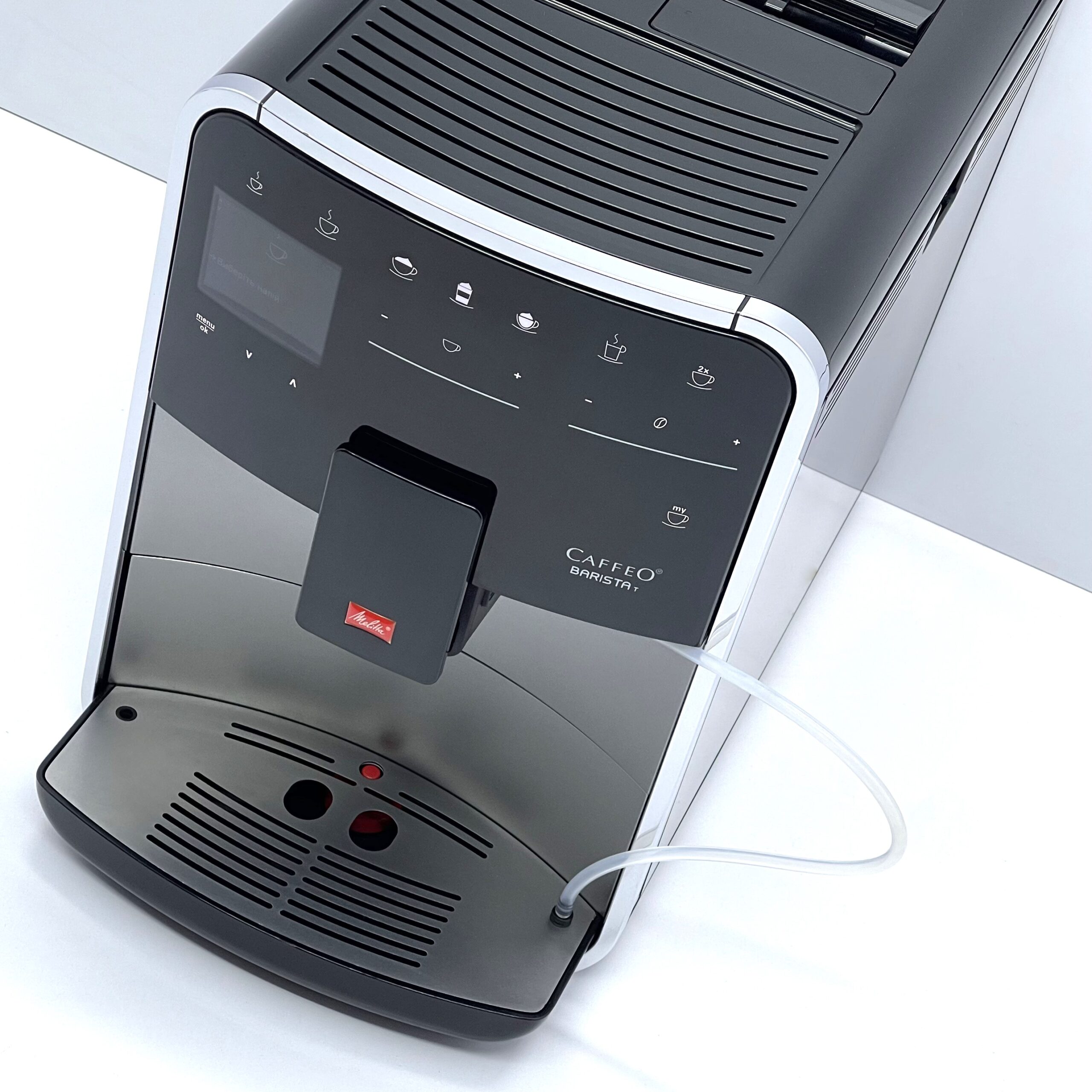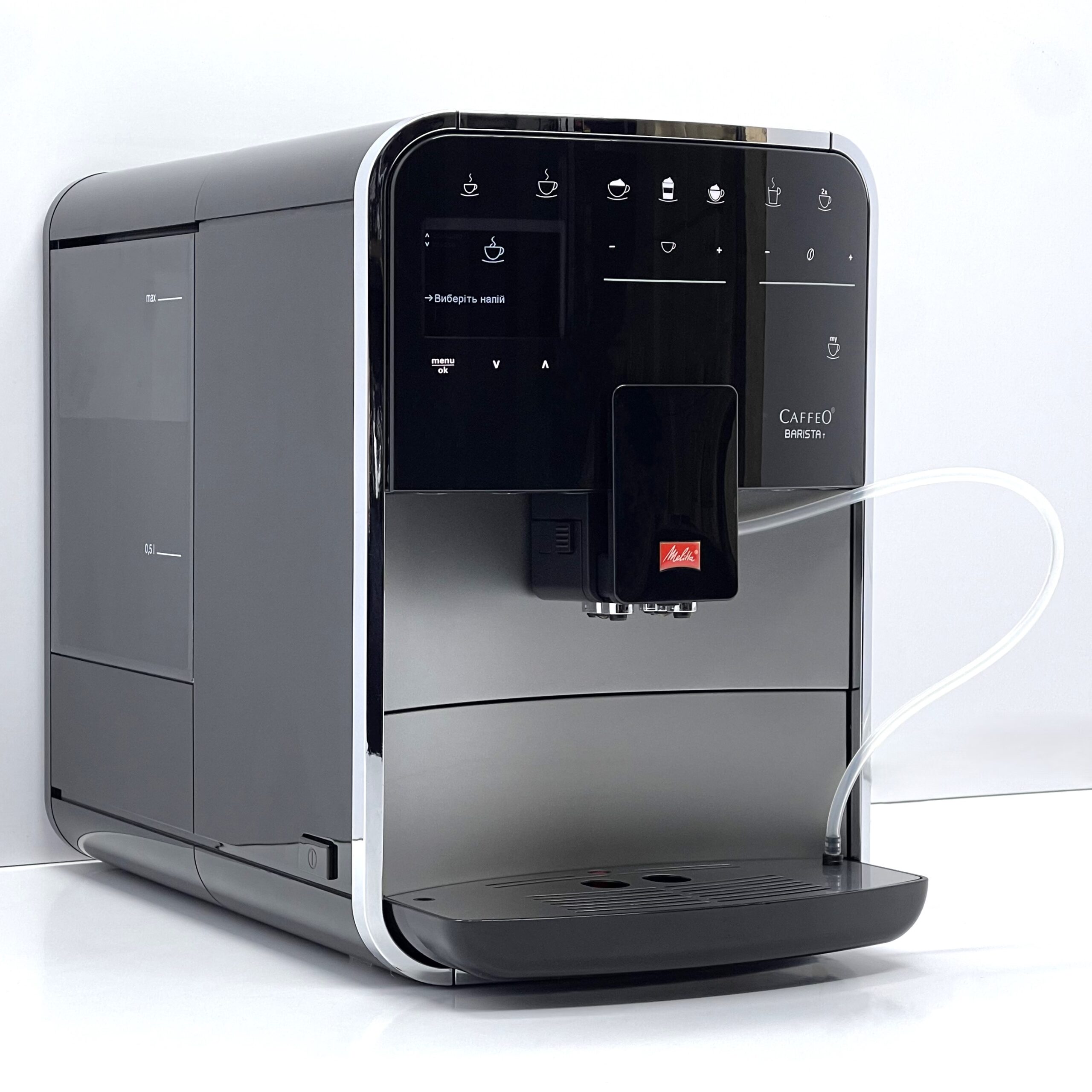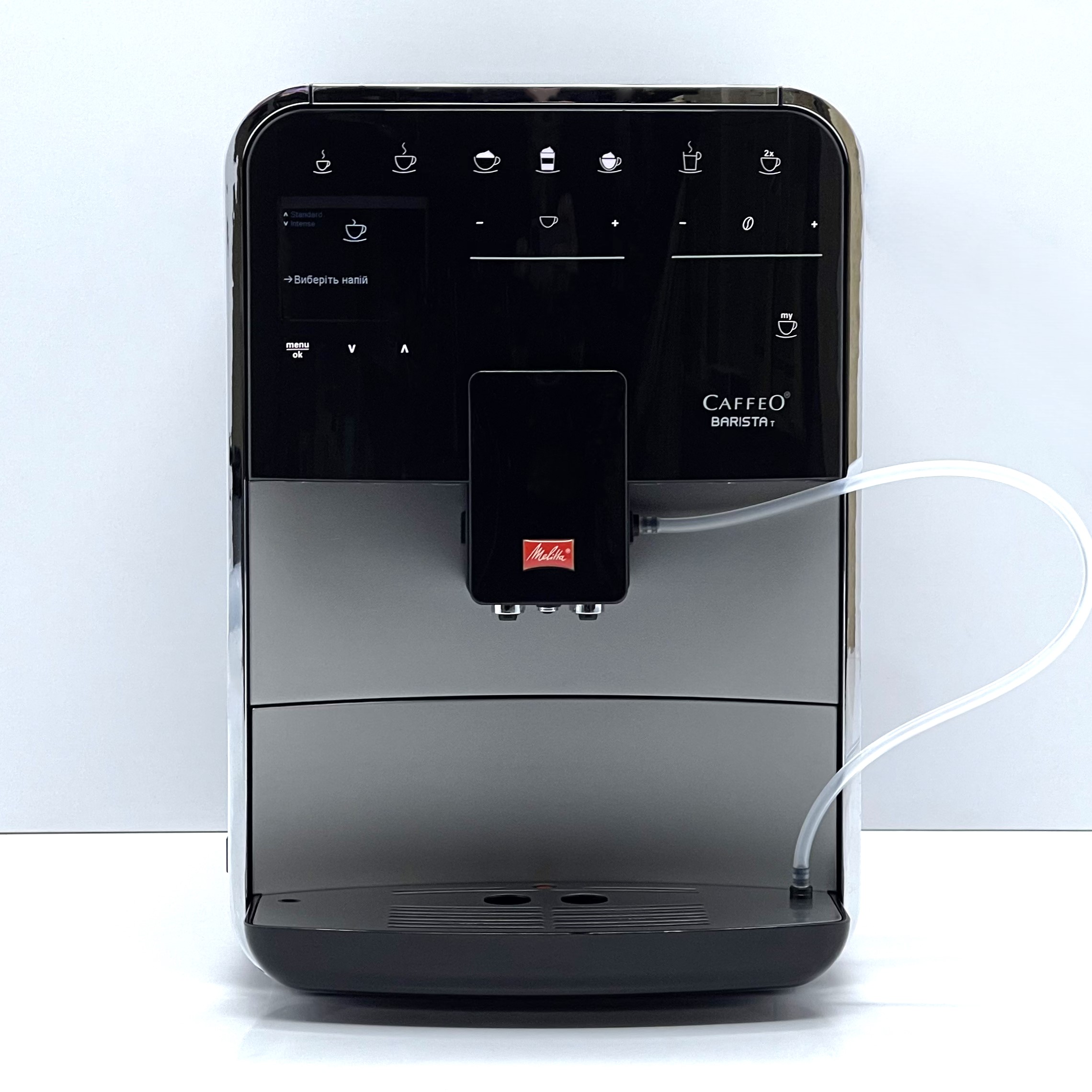 Melitta Caffeo Barista T – це автоматична кавомашина преміального класу для дому або офісу, яка поєднує широкий вибір напоїв і гнучкі налаштування. Модель працює як із зерновою, так і з меленою кавою.
