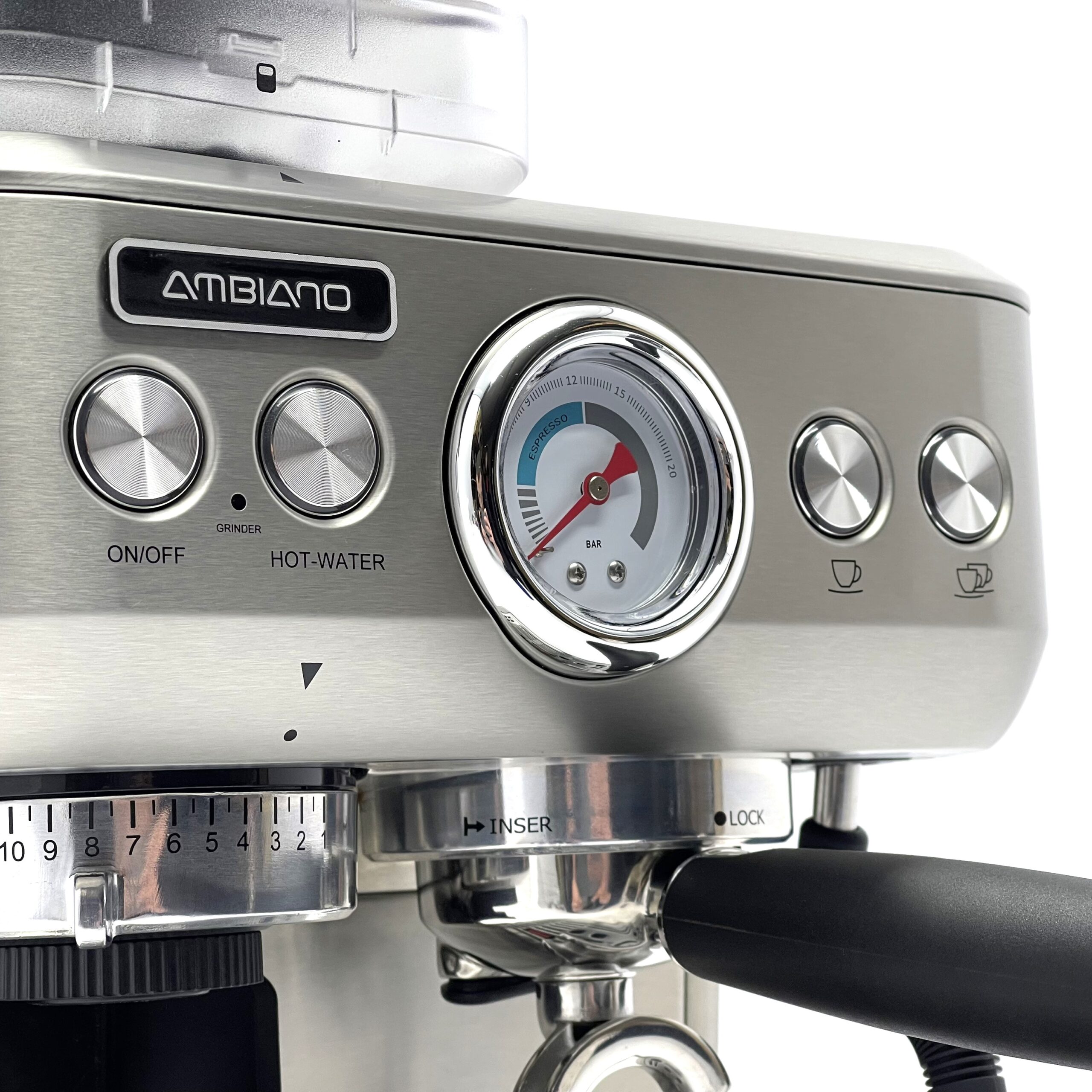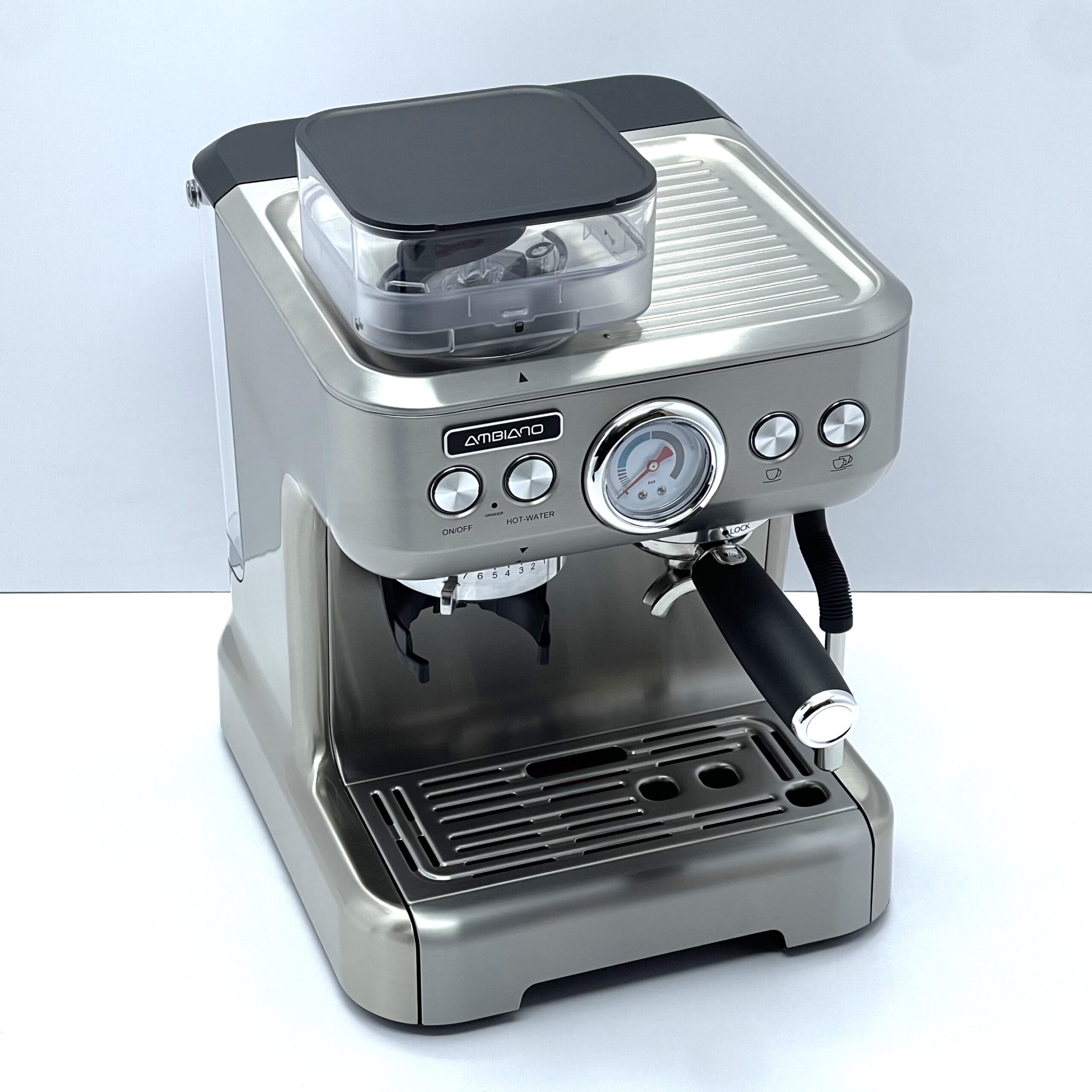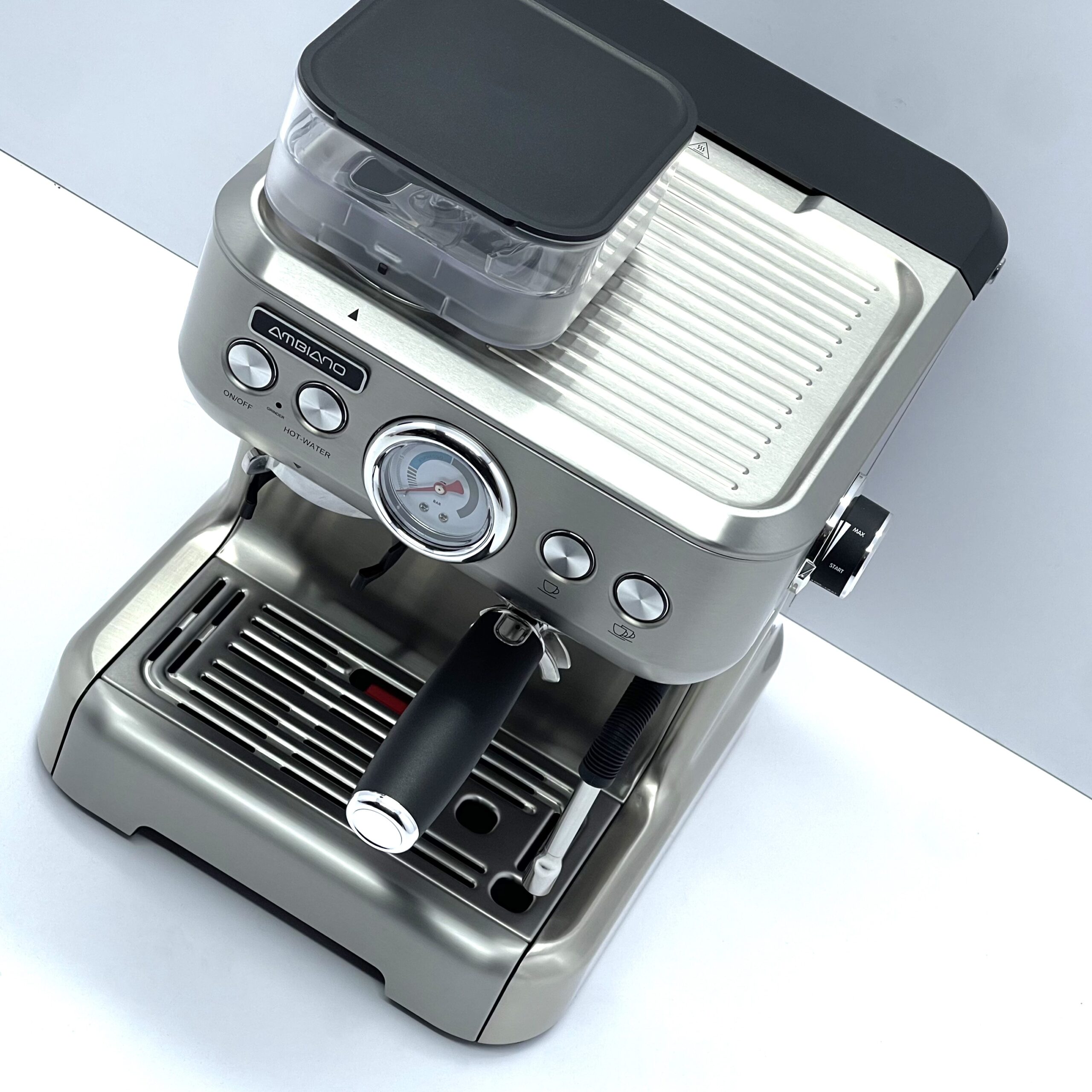 Ambiano GT-EMG-01 — це ріжкова кавоварка з вбудованою кавомолкою, яка дозволяє готувати еспресо зі свіжозмелених зерен у домашніх умовах. Такий формат дає більше контролю над смаком кави та дозволяє отримувати насичений напій з вираженим ароматом і стабільною кремою.