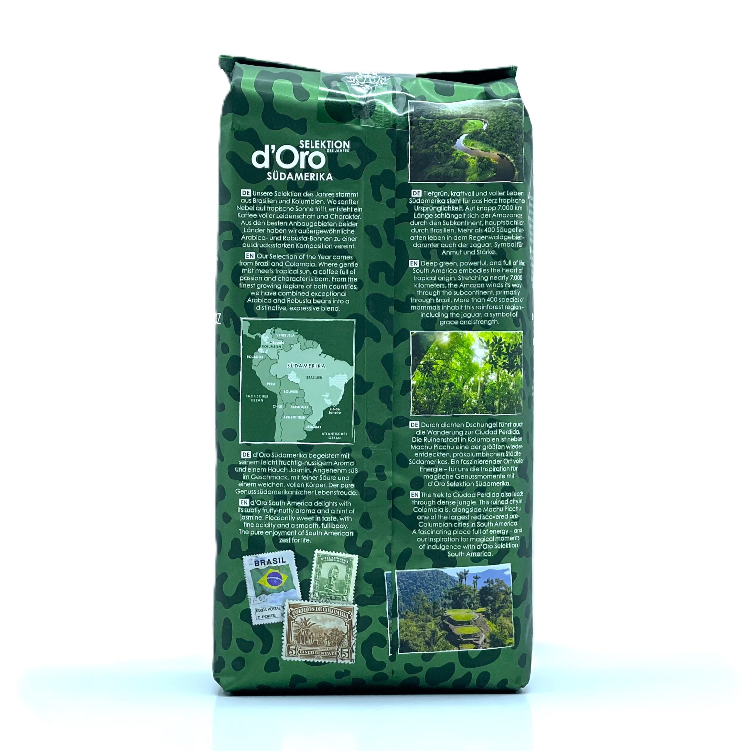 Кава в зернах Dallmayr Crema d’Oro Südamerika 1 кг — це суміш 100% арабіки, створена із зерен, вирощених у кавових регіонах Південної Америки, зокрема в Бразилії та Колумбії. Таке походження формує м’який аромат і збалансований смак напою.