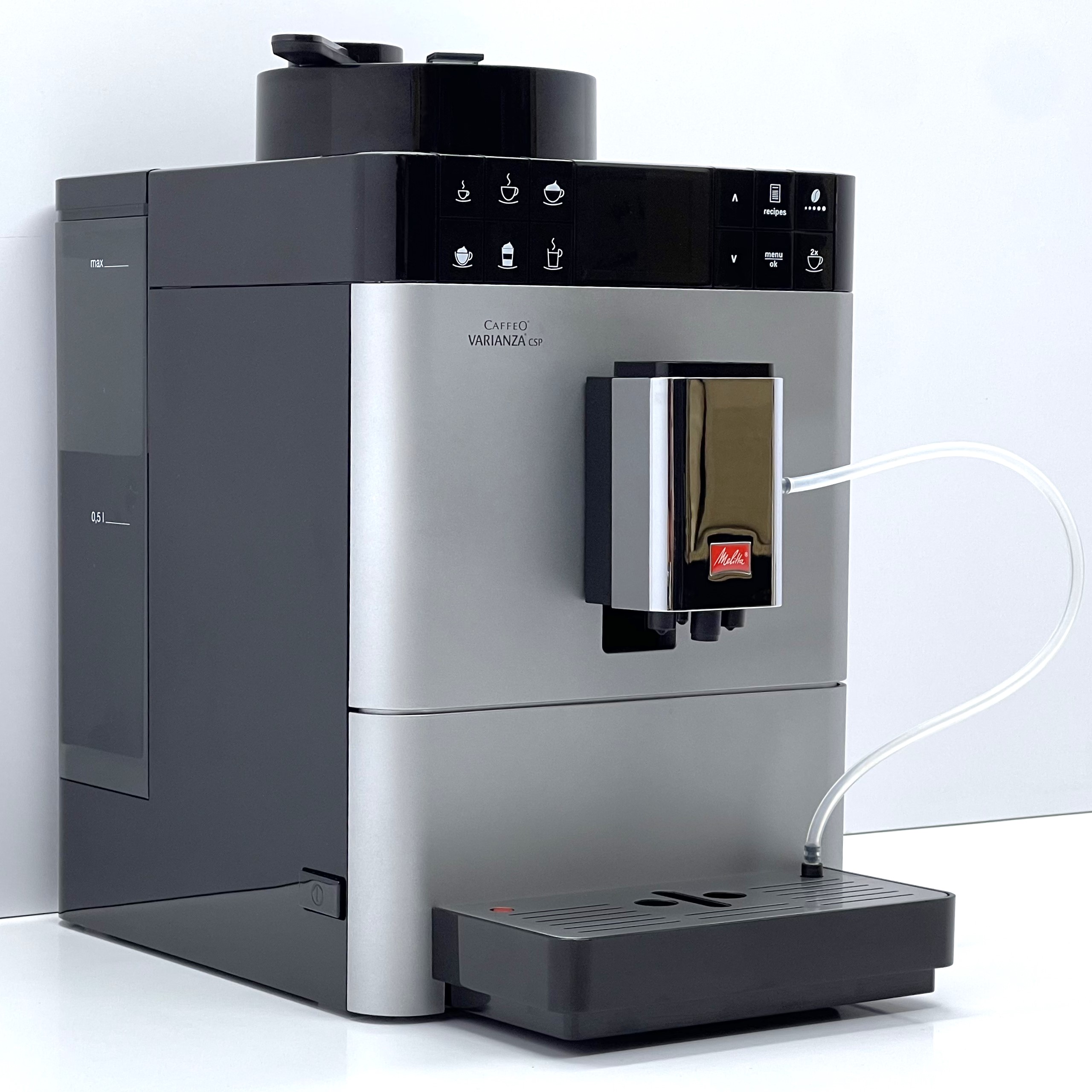 Melitta Caffeo Varianza CSP Black — это автоматическая кофемашина для дома, офиса или небольшого рабочего пространства, которая сочетает компактный формат, широкий выбор напитков и удобное ежедневное управление. Модель готовит эспрессо, американо, капучино, латте, латте макиато и другие кофейные напитки одним нажатием, а автоматическая молочная система делает приготовление молочных напитков быстрым и удобным. Кофемашина работает с зерновым и молотым кофе, поэтому даёт больше свободы в использовании.