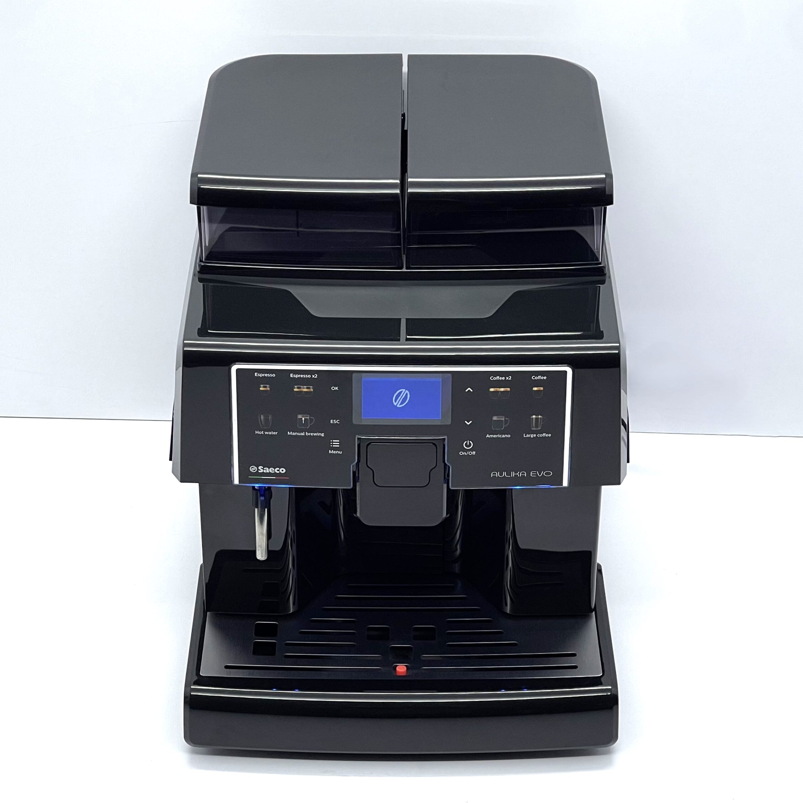 Saeco Aulika Evo — это автоматическая кофемашина, созданная для офисов, кофейных зон, магазинов, салонов, приёмных и других мест, где нужна стабильная подача чёрного кофе в течение дня. Важно, что эта версия без молочной системы, поэтому основной акцент сделан именно на приготовлении эспрессо, лунго, двойного эспрессо и других кофейных напитков без молока. Такой формат особенно удобен там, где нужна высокая производительность, простое обслуживание и минимум лишних операций в ежедневной работе.