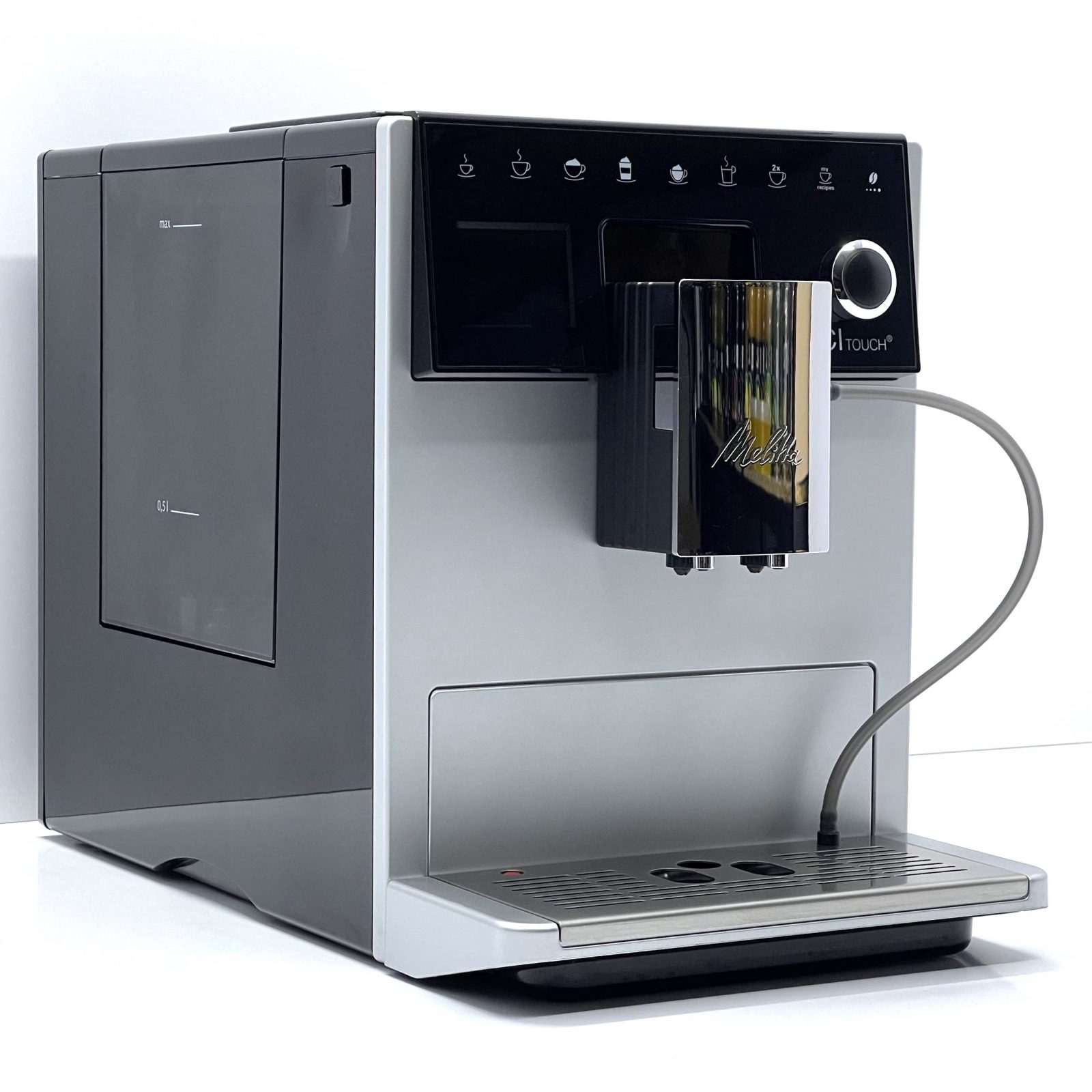 Melitta Caffeo CI Touch — это премиальная автоматическая кофемашина, сочетающая в себе высокую производительность, инновационные технологии и элегантный серебристый дизайн. Благодаря сенсорному управлению One Touch, вы можете приготовить классические кофейные напитки одним касанием — эспрессо, капучино, латте макиато или просто подогретое молоко.