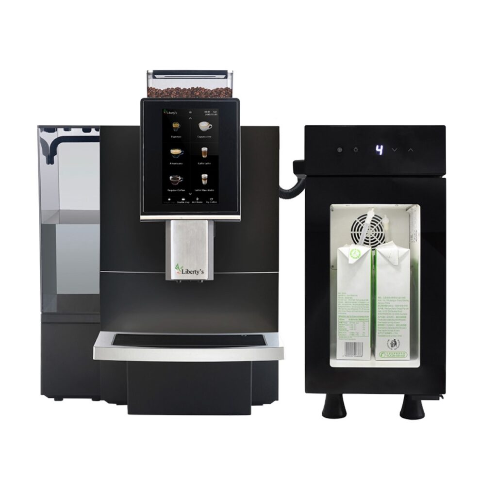Liberty’s F12 Big – это современная суперавтоматическая кофемашина, сочетающая стильный дизайн, высокую производительность и простоту в использовании. Эта модель идеально подходит для использования в офисах, кафе, ресторанах и других заведениях, где нужно быстро приготовить качественные кофейные напитки. В комплекте с кофемашиной идет холодильник Proxima BR9CI, предназначенный для хранения молока, что делает данную систему идеальным выбором для приготовления молочных напитков.